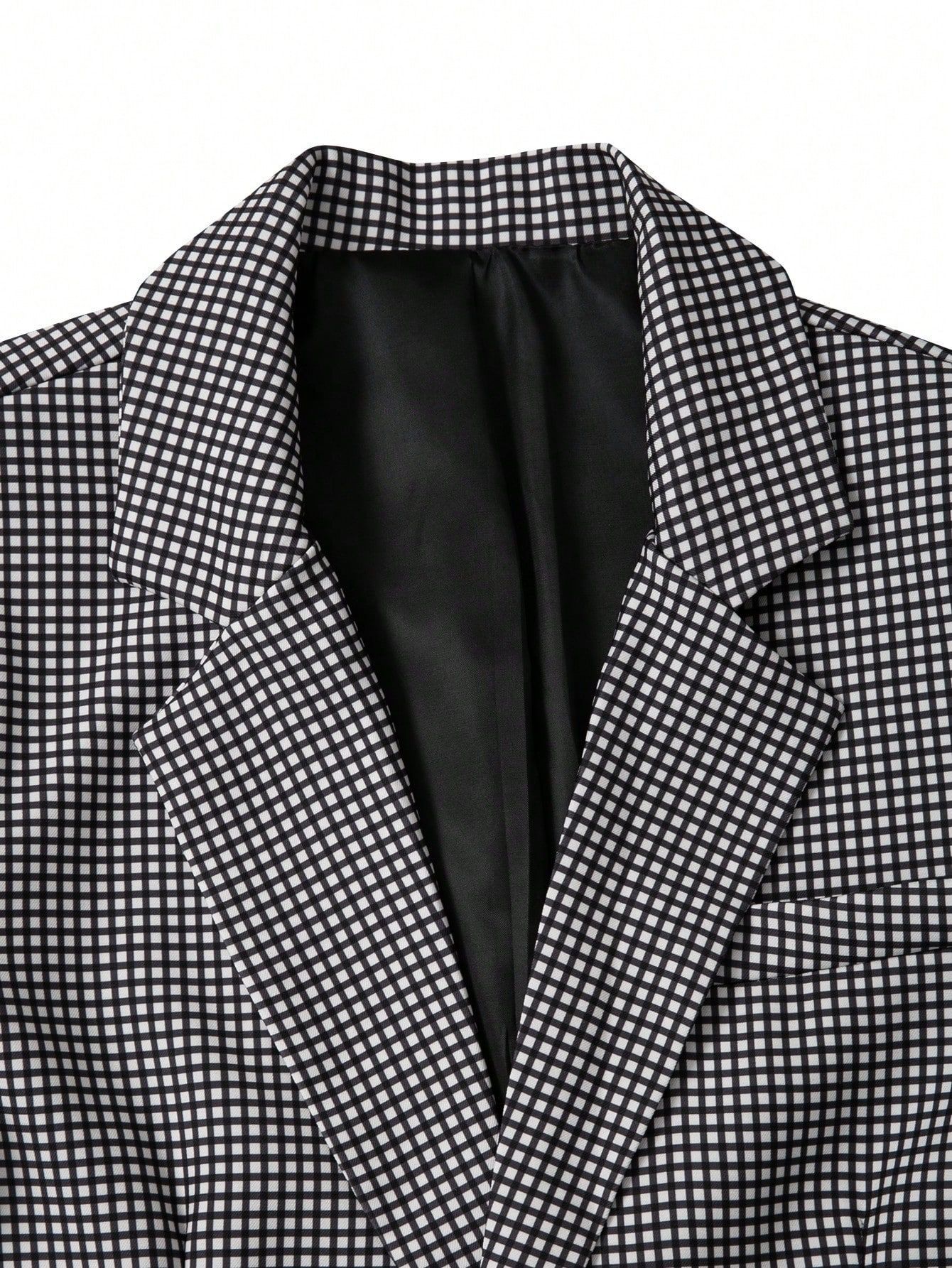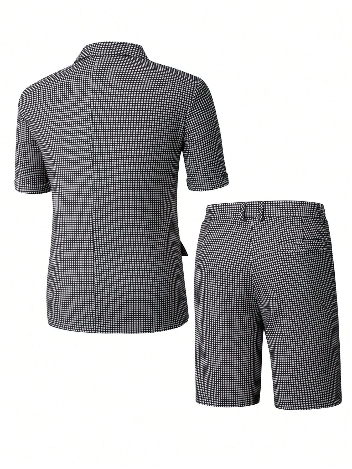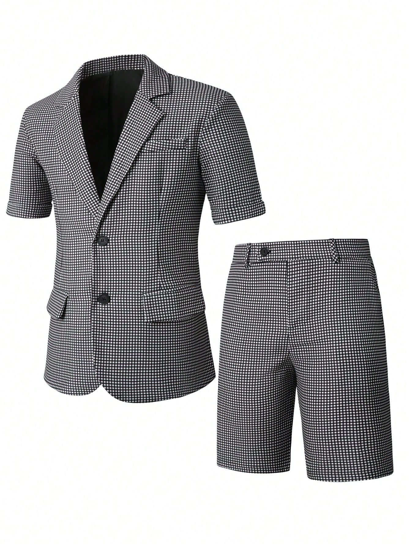 Mens Plaid Slim-Fit Business-Casual Suit Set