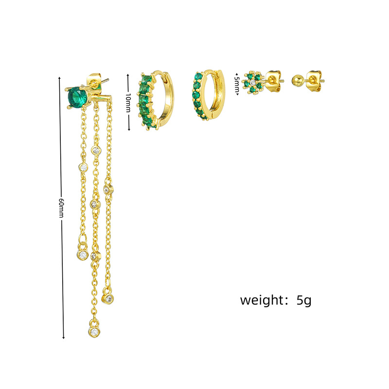 18K Light Luxury Design Green Zirconium Earrings Suit Earrings