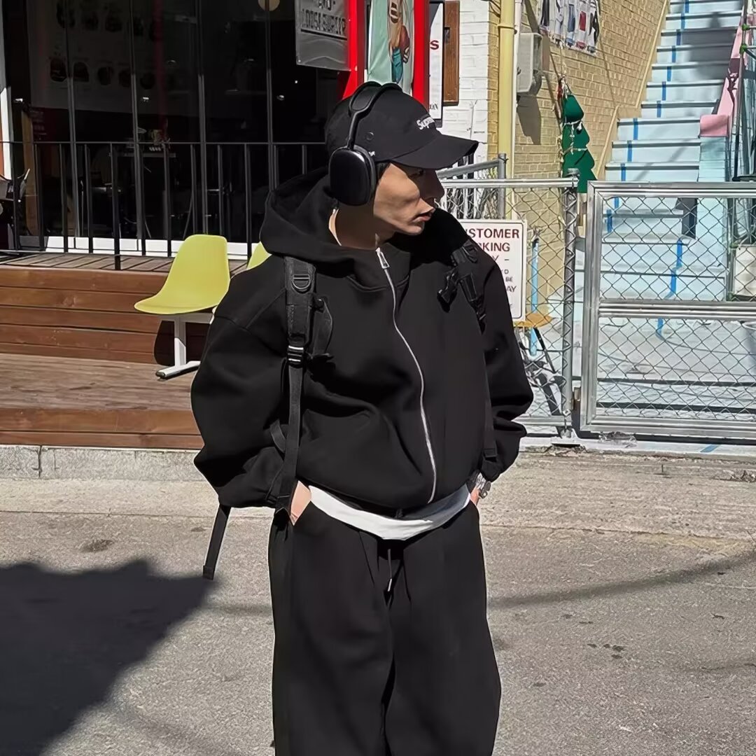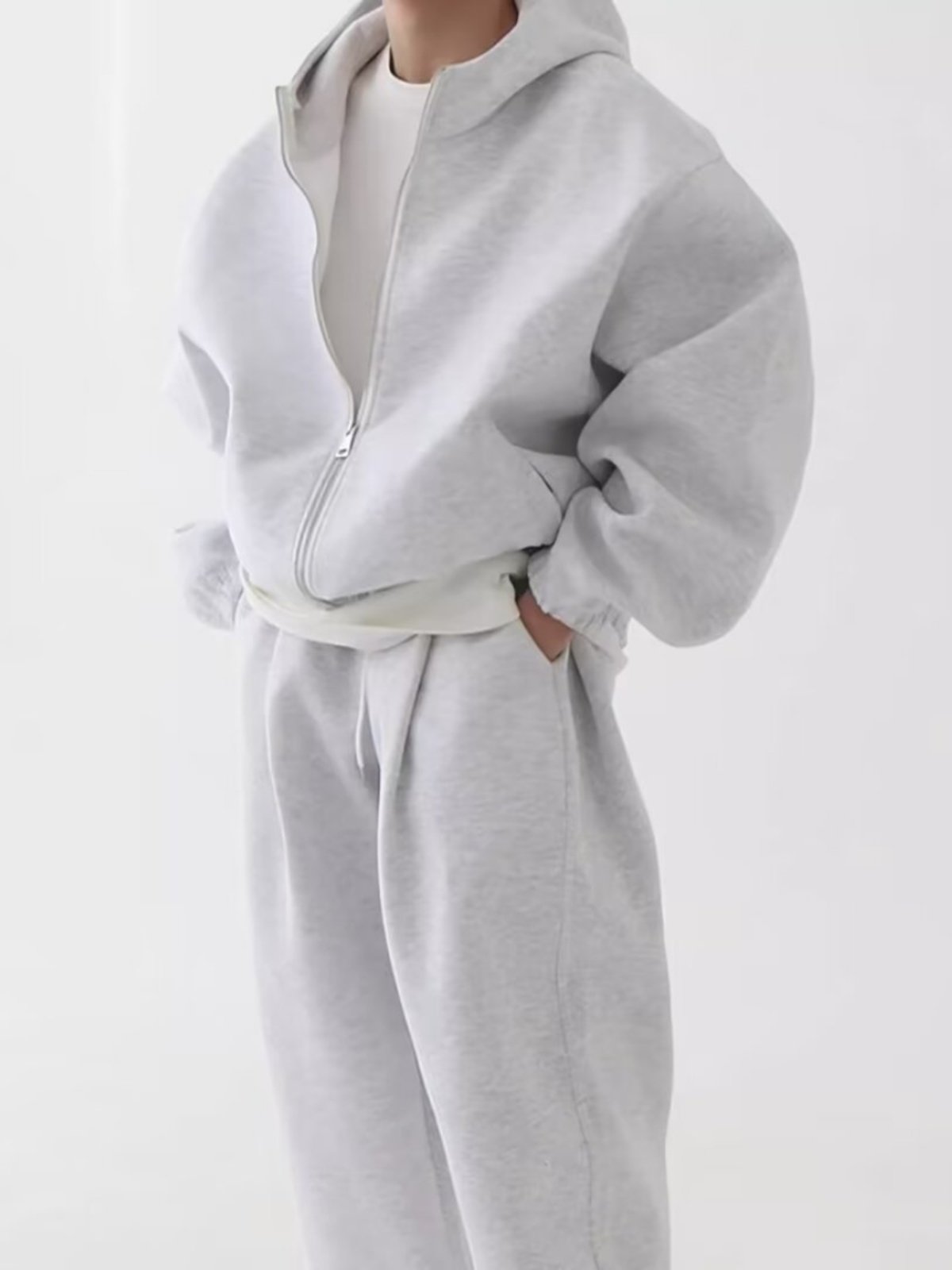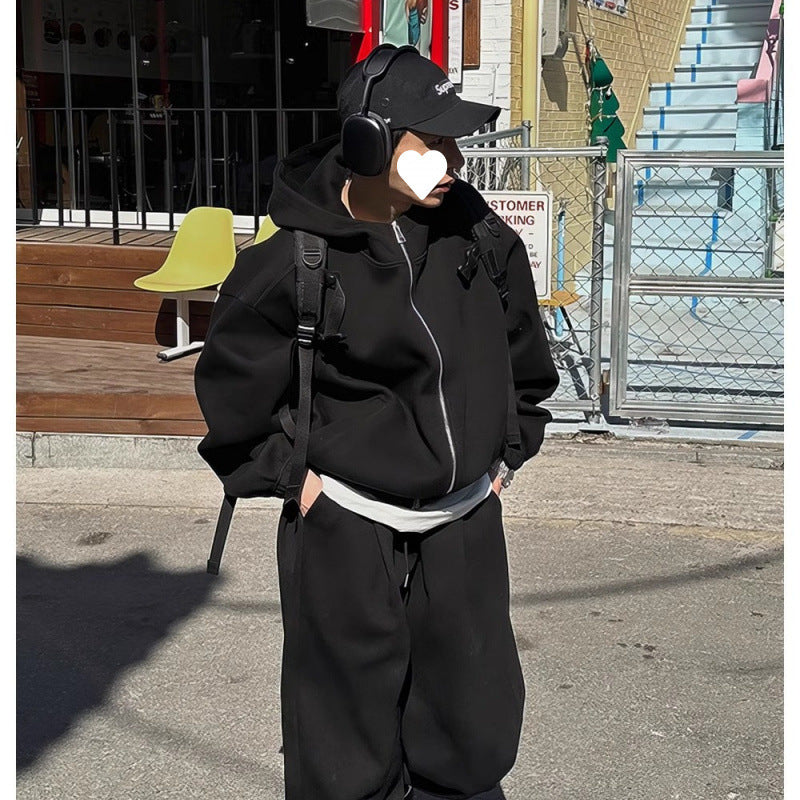 Autumn Double-Zipper Lazy-Style Hoodie Set