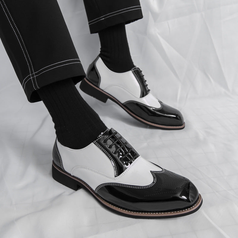 Brogue Plus Size Color Matching Trendy Young Men's Leather Shoes