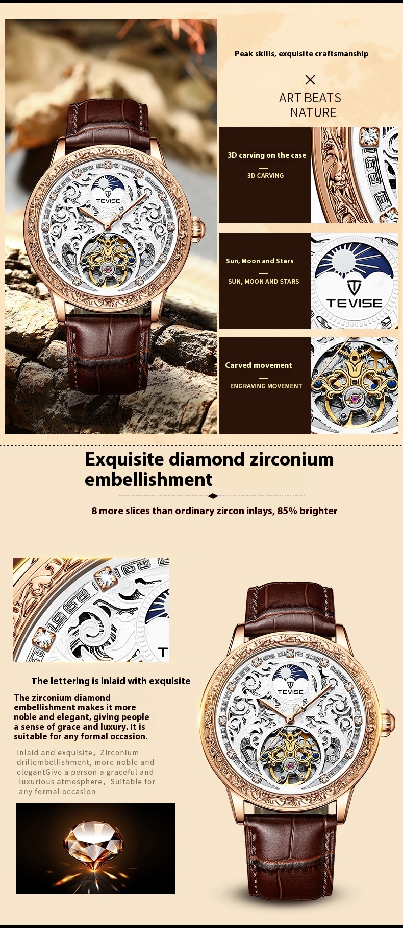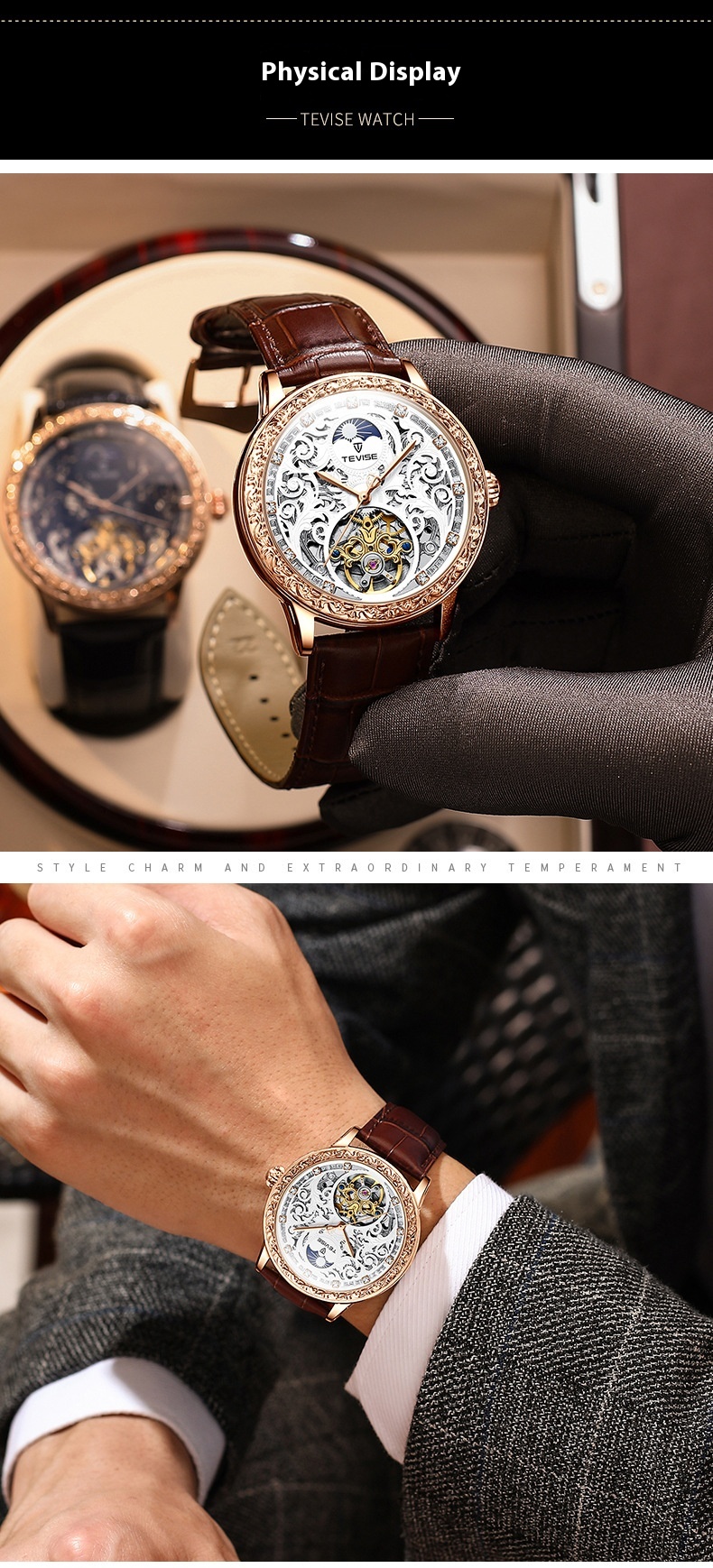 Business Casual Waterproof Hollow Out Men's Mechanical Watch