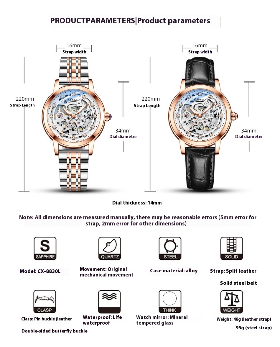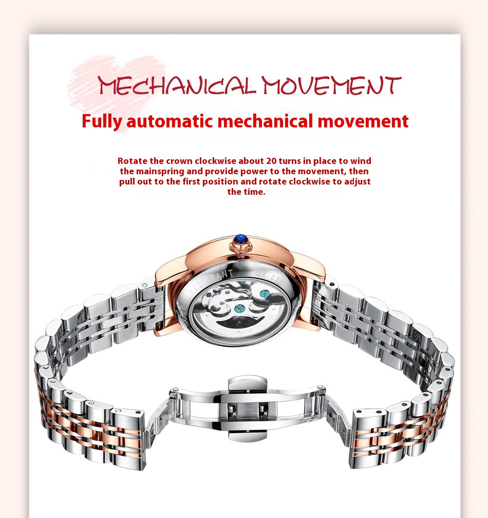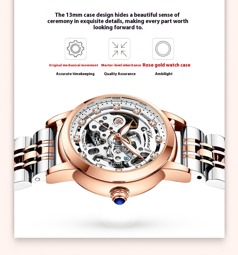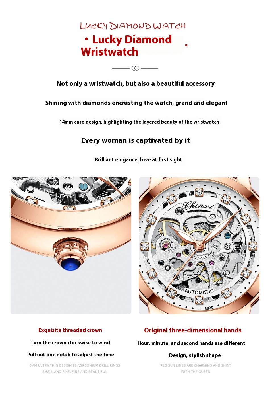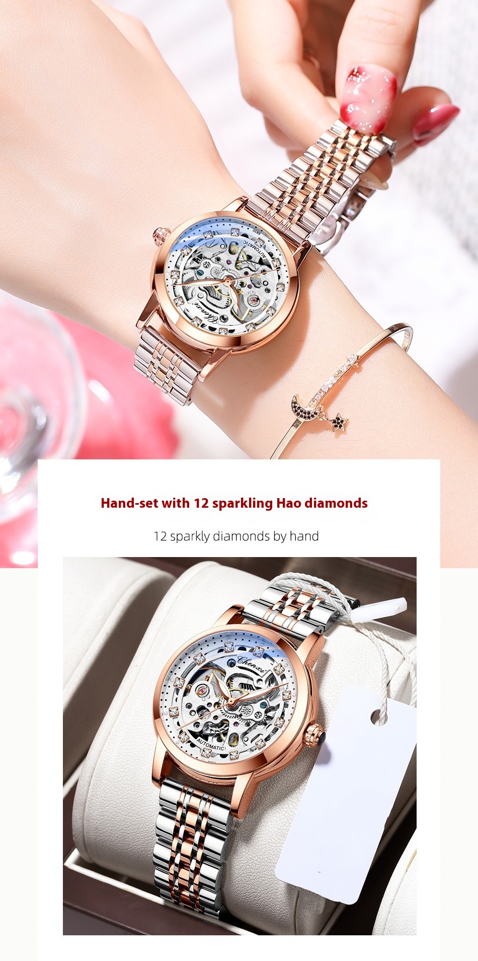 Fashion Diamond Waterproof Automatic Hollow Mechanical Watch