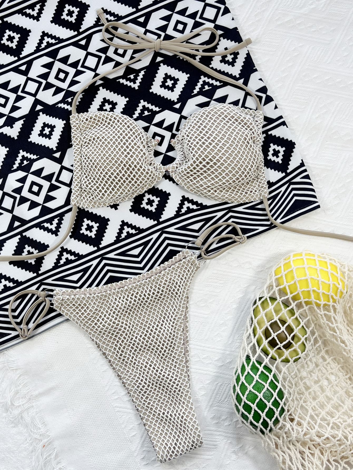 Halter Neck Fishnet Bikini Set