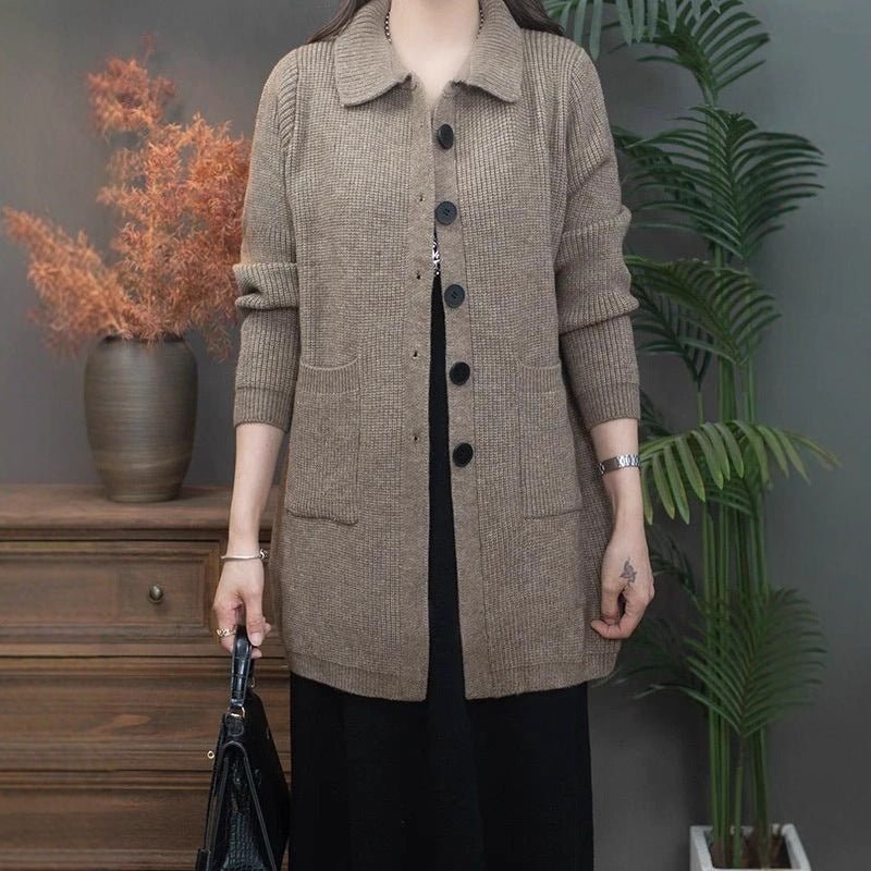 High Polo Collar Women's Sweater Single-breasted Knitted Cardigan