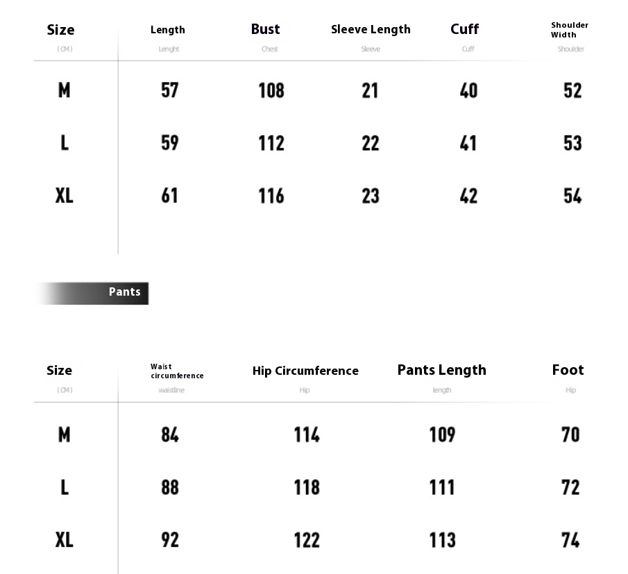 Color classification: dark blue Jacket, dark blue Jacket, dark blue Bottoms, dark blue Bottoms