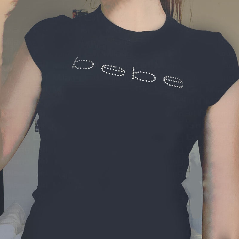 Letter Rhinestone Slim Fit Midriff-baring Top