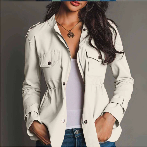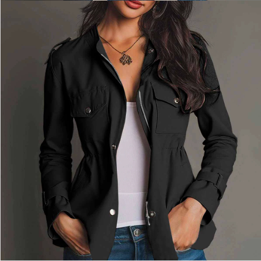 Long Sleeve Waist-tight Jacket Pocket Windbreaker Coat Women's Clothing