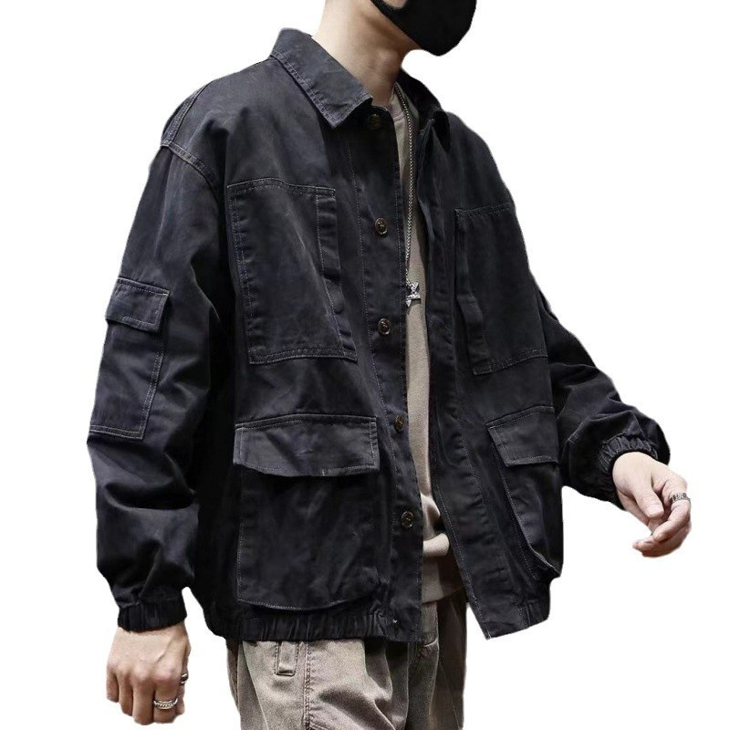 Loose-fitting Trendy Vintage Denim Jacket With Multiple Pockets