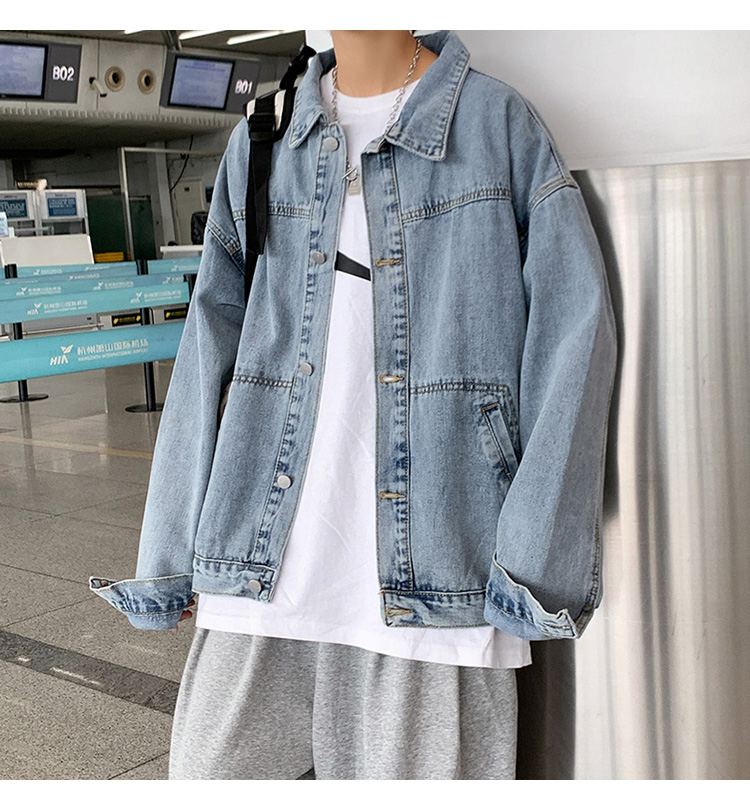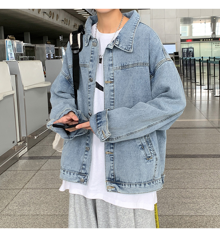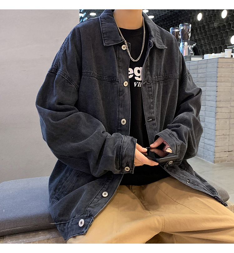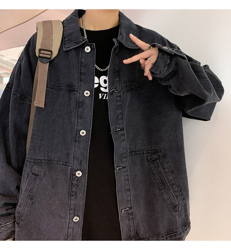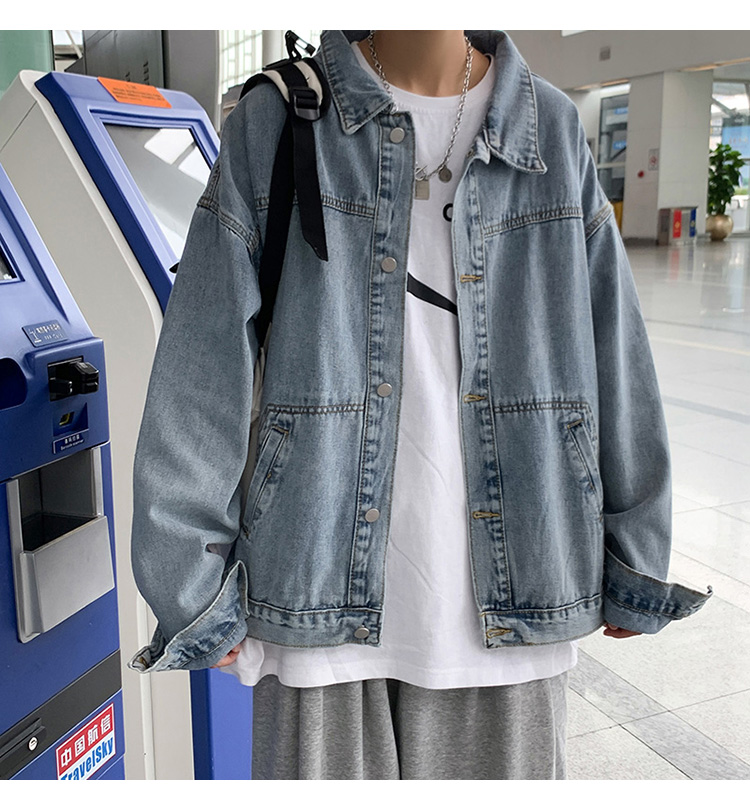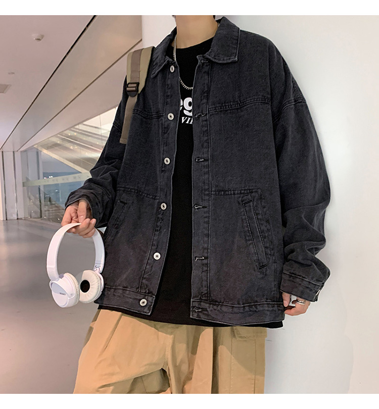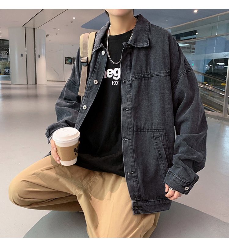 Mens Korean-style Trendy American Workwear Vintage Denim Jacket