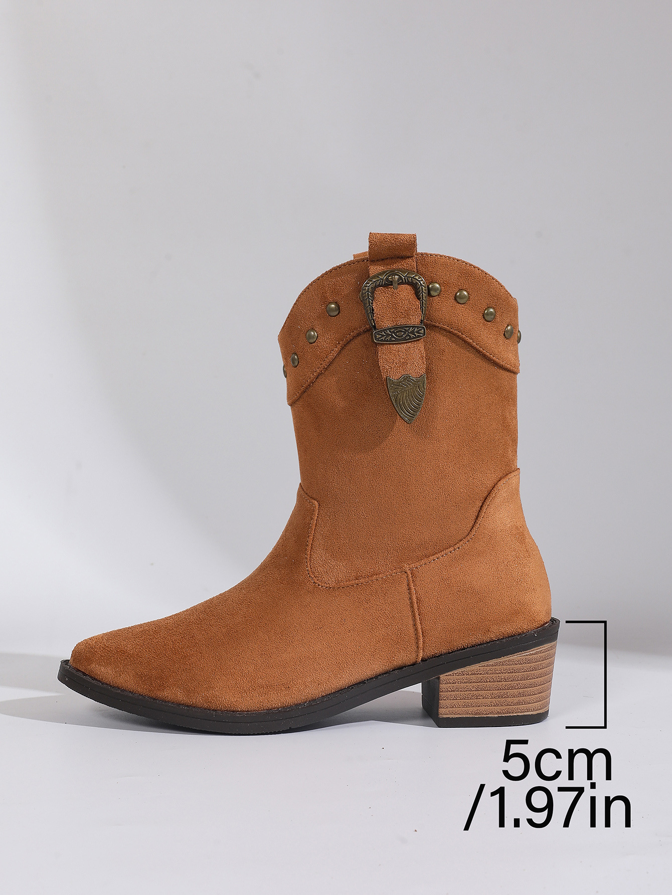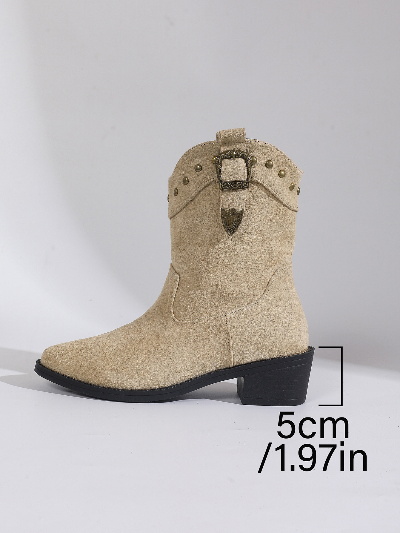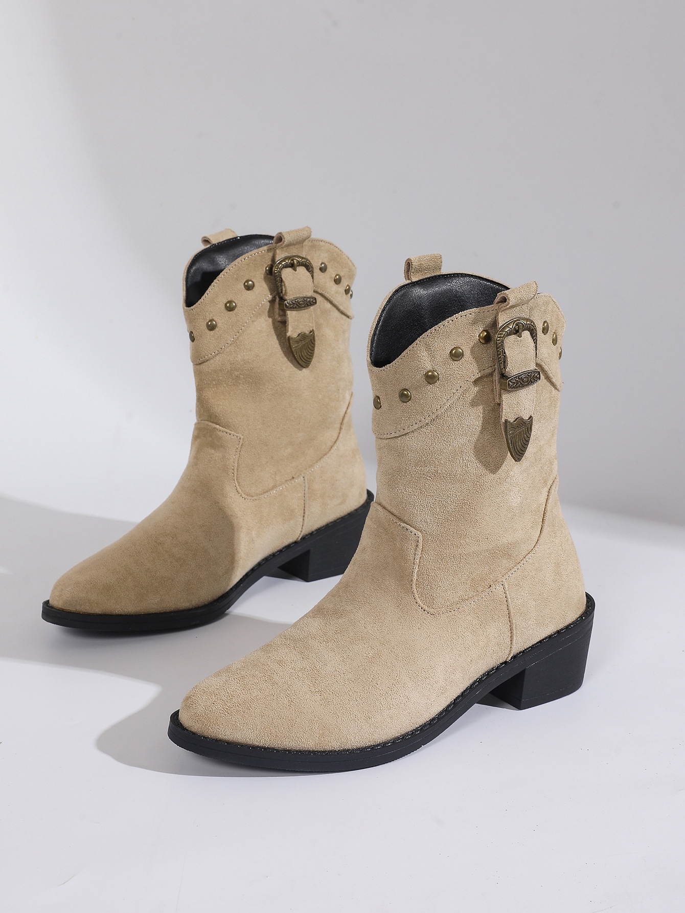New Pointed Stitching Rivet Sleeve Women's Mid Boots