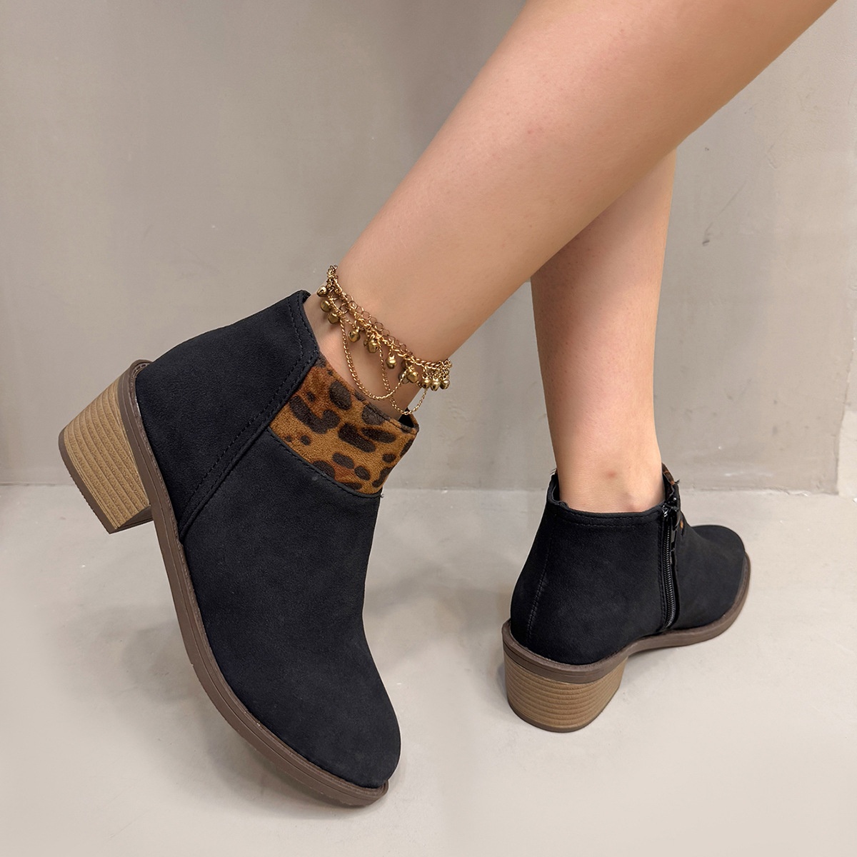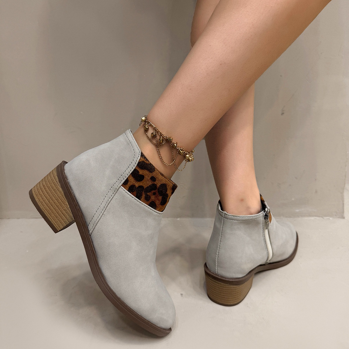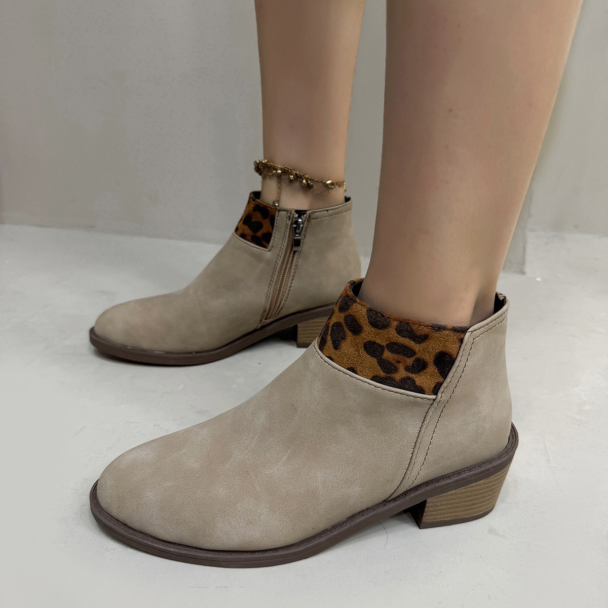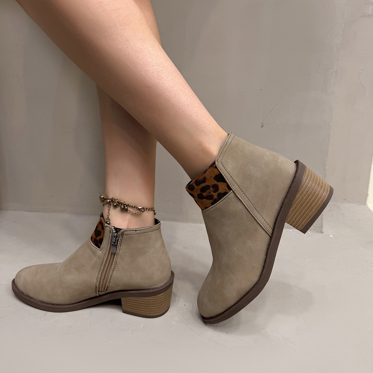 Plus Size Frosted Leopard Print Pointed Sense Thin Booties
