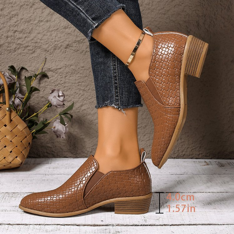 Pointed-toe High-cut Pumps Brown Chunky Heels Ankle Large Size Small Leather Shoes