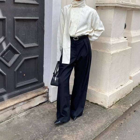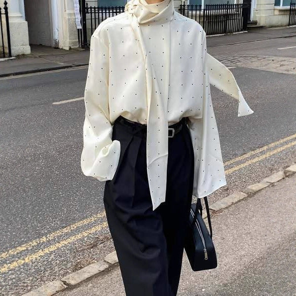 Ribbon Polka-dot Loose-fitting Commuter Long Sleeve Top