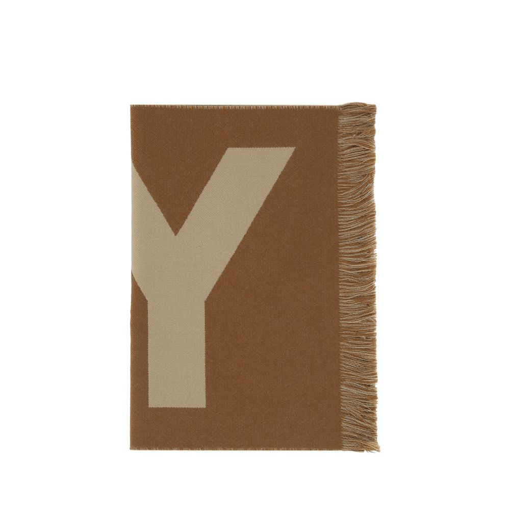 Wool Scarf by Burberry, iconic brand monogram printed in contrast on front and back, frayed hems.
