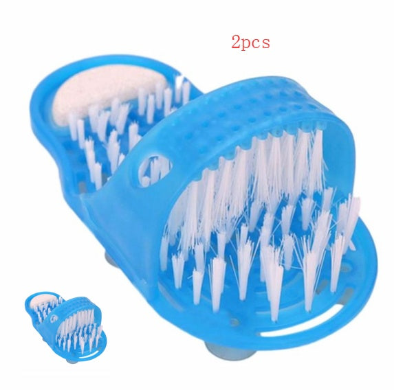 Clean your feet without bending. Soften rough heels on the pumice stone. Simply add soap and scrub feet back and forth.