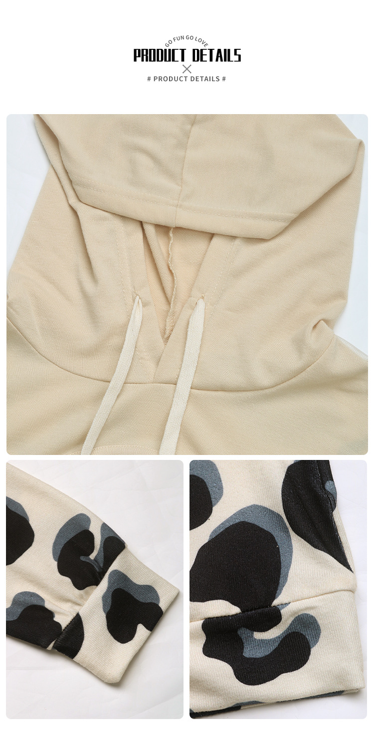 Simple Style Loose Leopard Print Stitching Fake Two-piece Hollow Hooded Sweater For Women