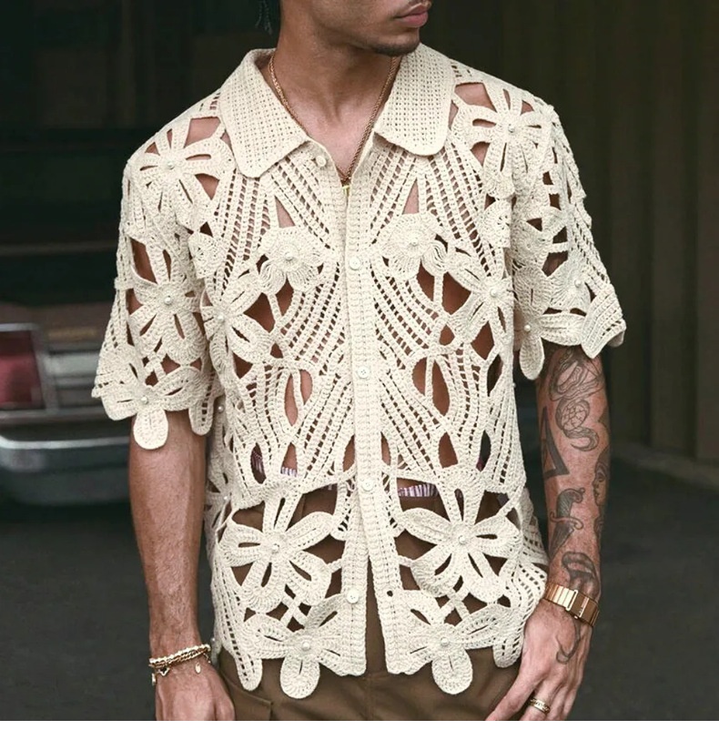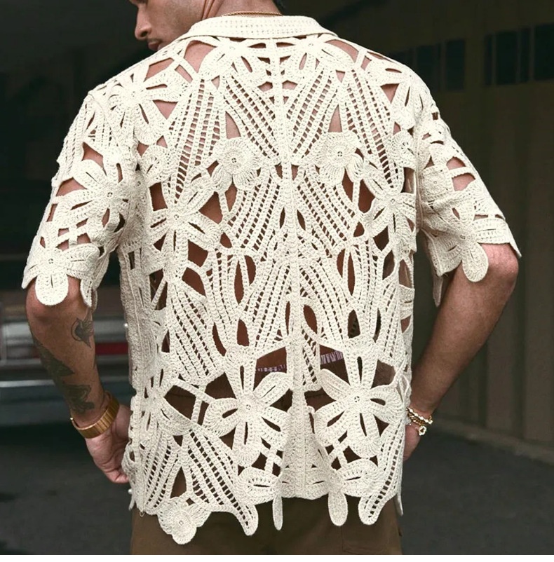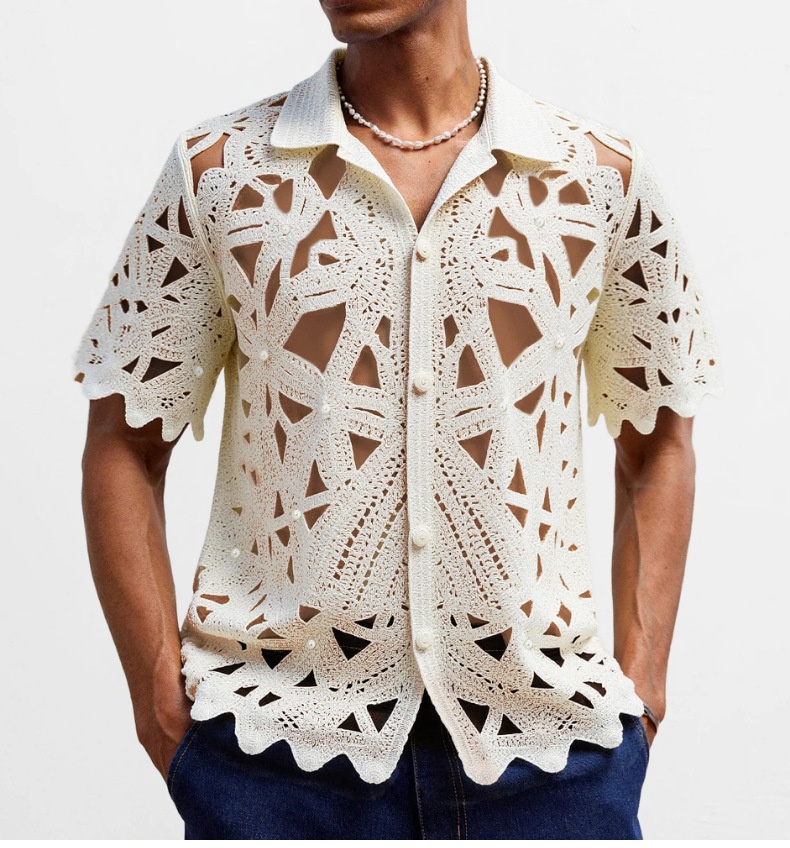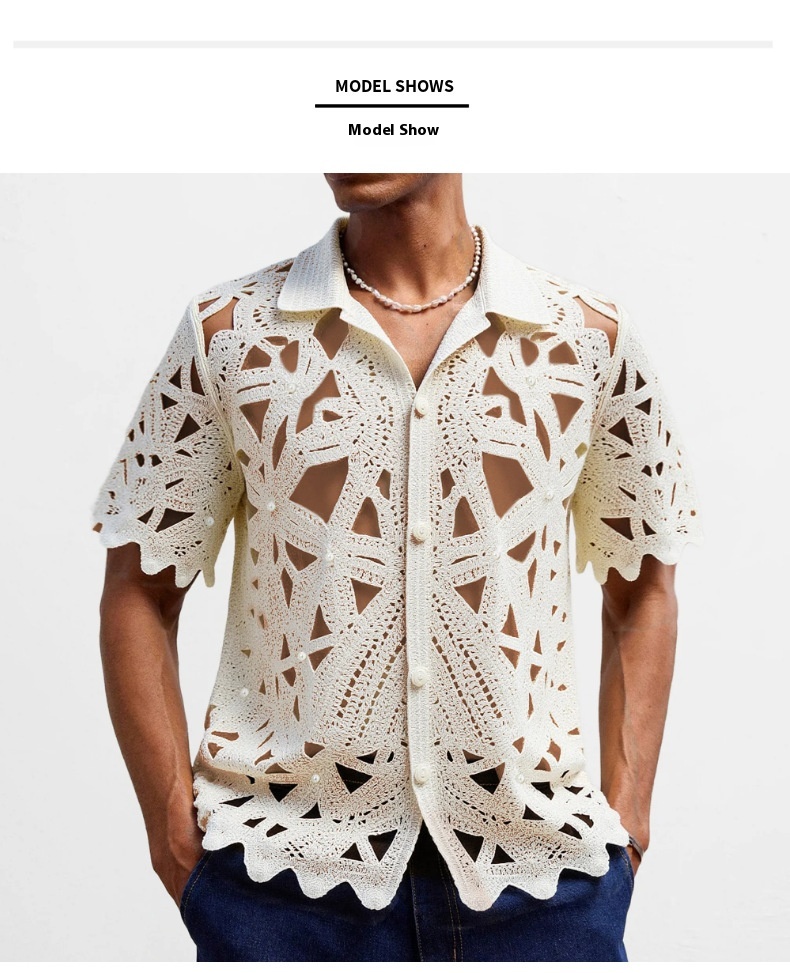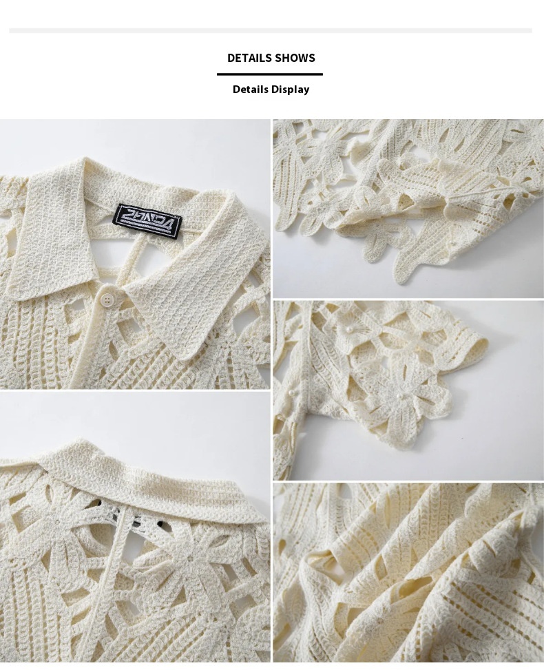 Summer New Hand Crocheting Hollow-out Short-sleeved Sweater Casual