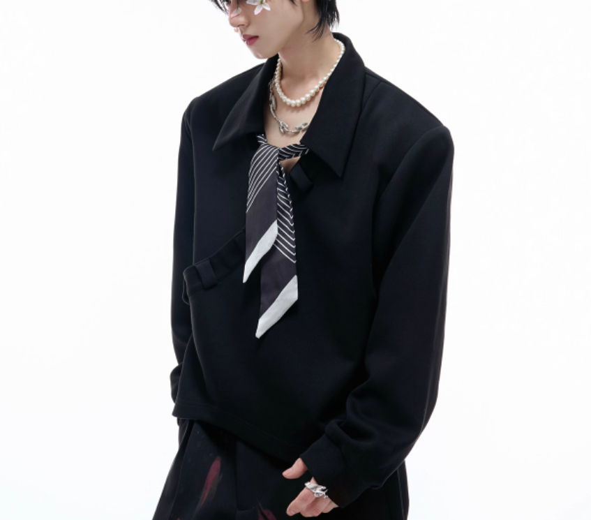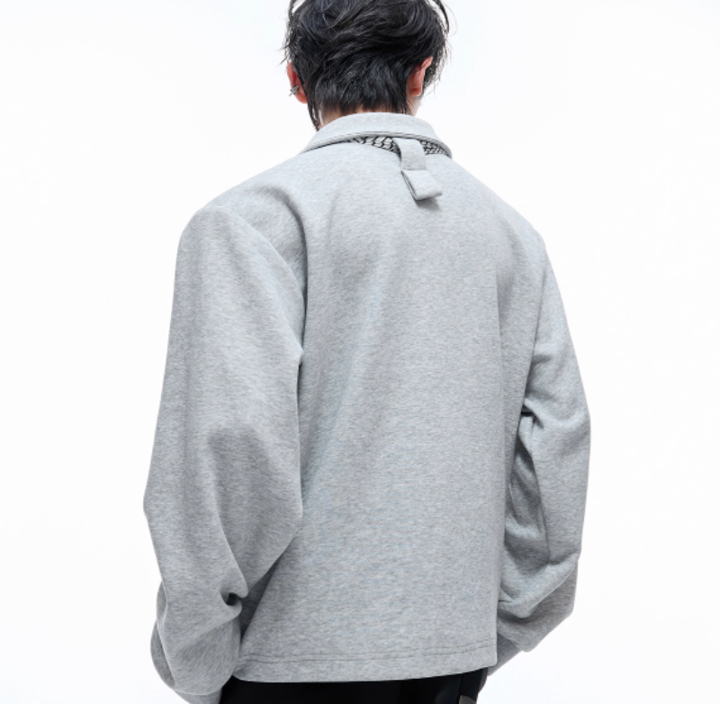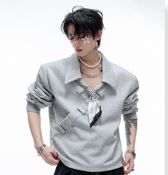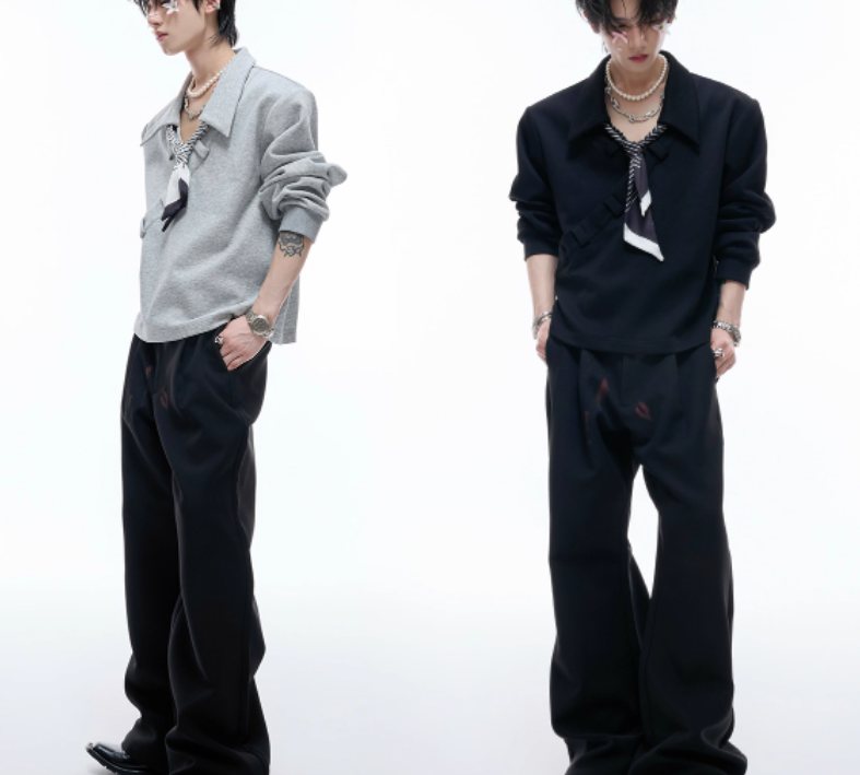 V-neck Patchwork Polo Shirt Loose High-end Long-sleeved Sweater