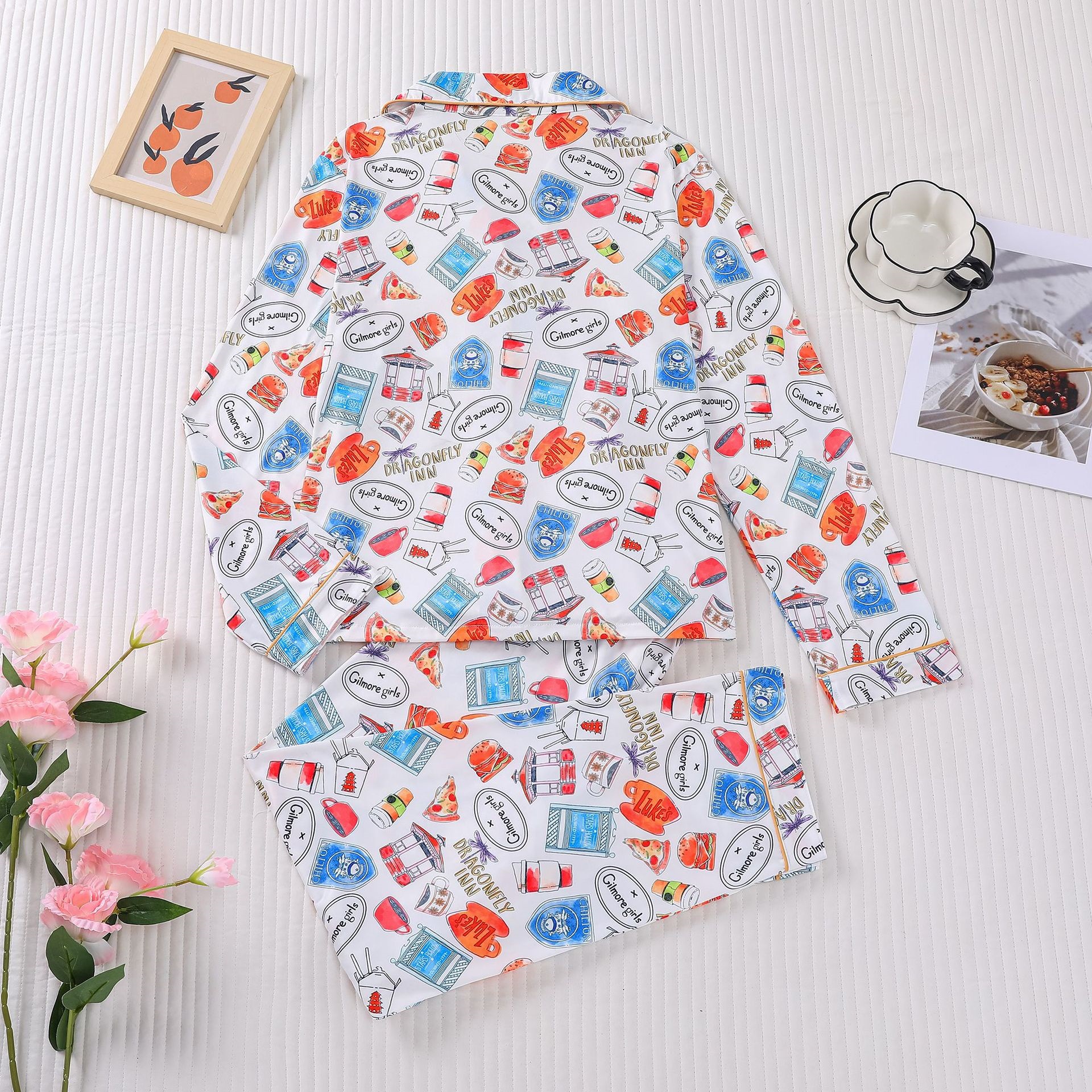 Women's Pajamas Printing Lapel Long-sleeved Trousers Homewear