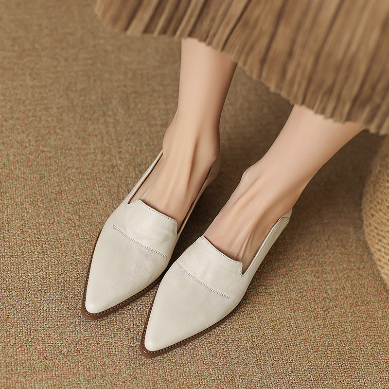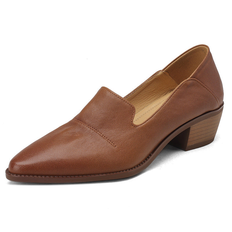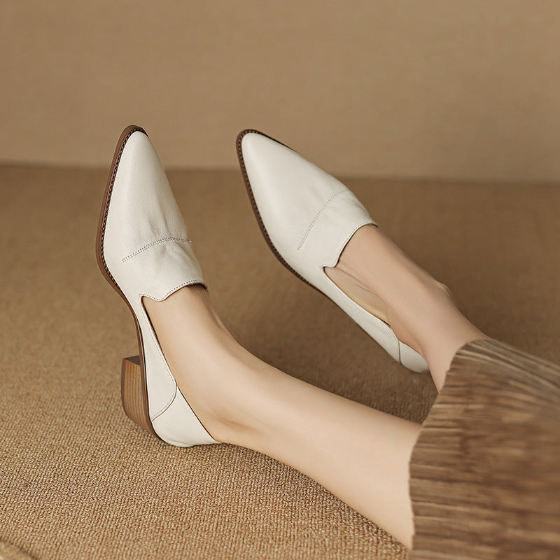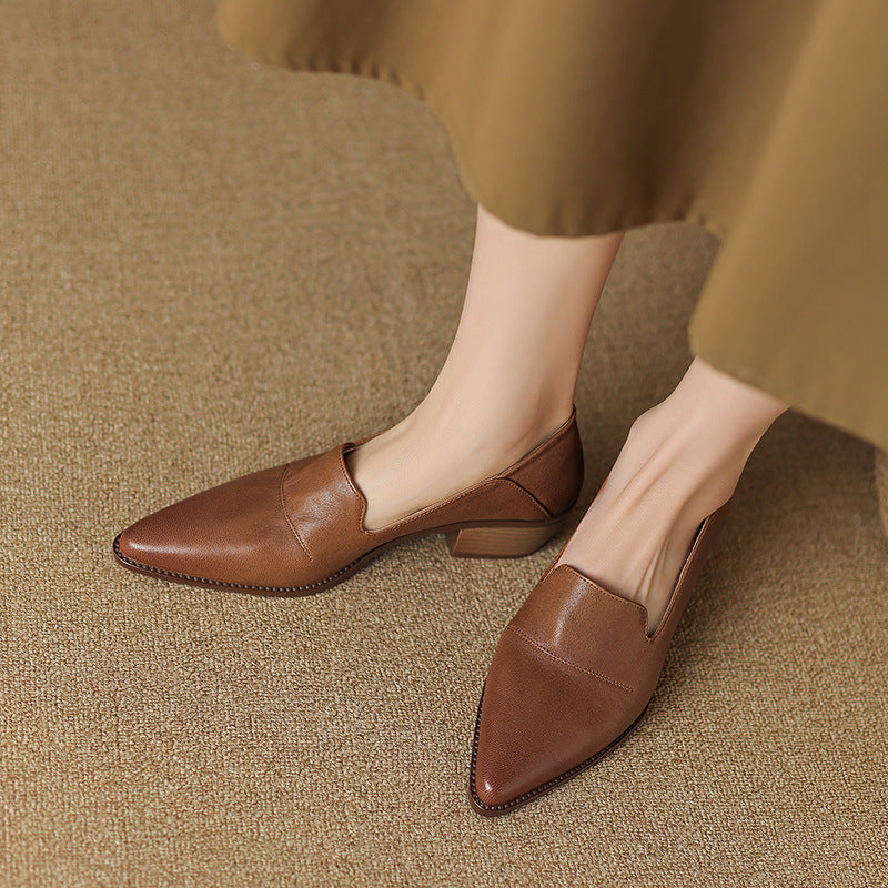 Women's Spring And Autumn Mid Heel Deep Mouth Leather Shoes