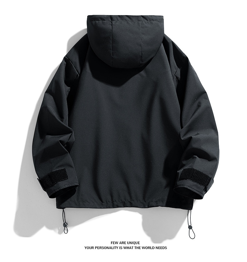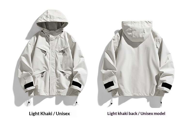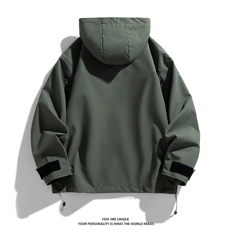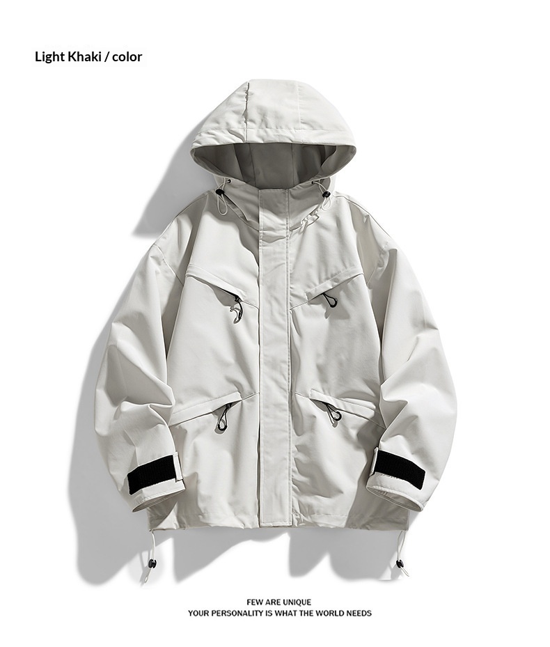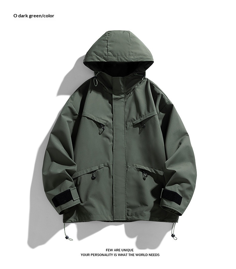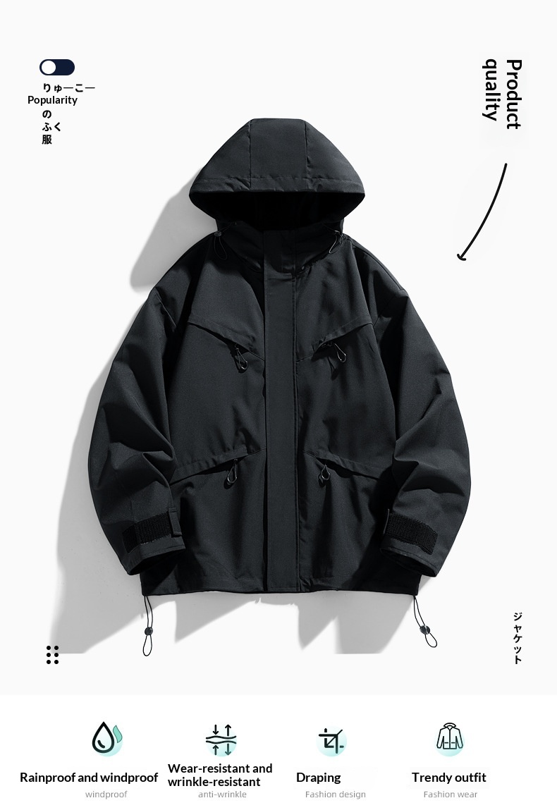 Japanese Style Retro Zippered Pocket Hooded Loose Fit Functional Shell Jacket