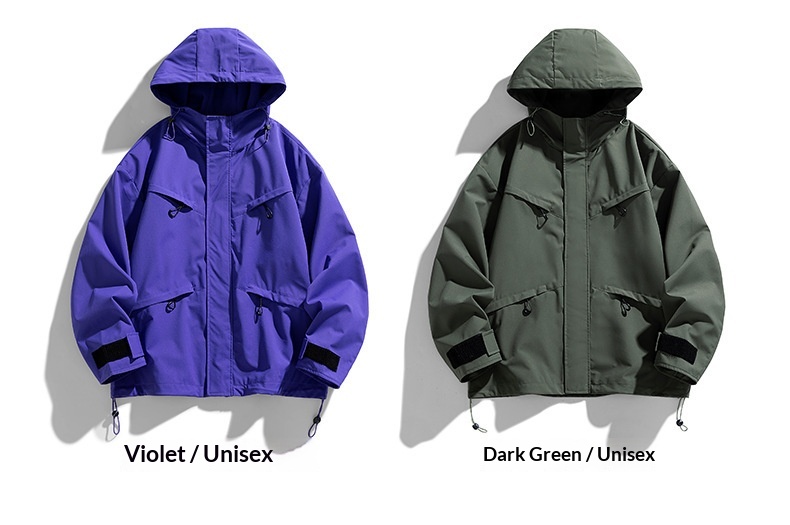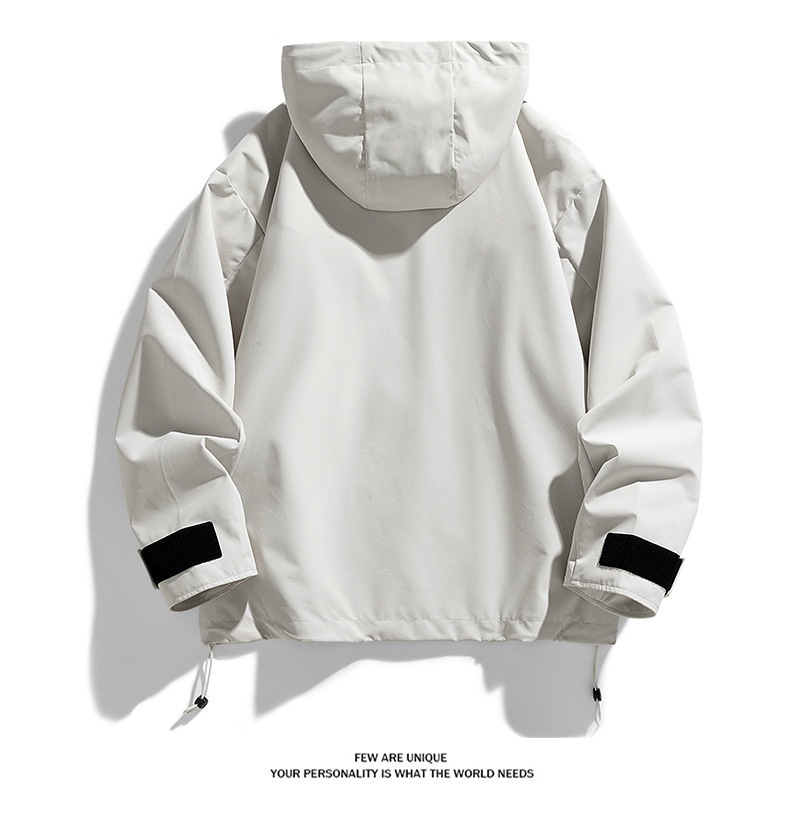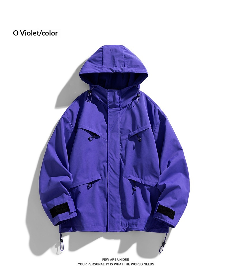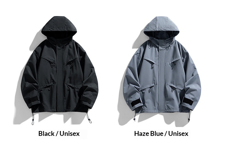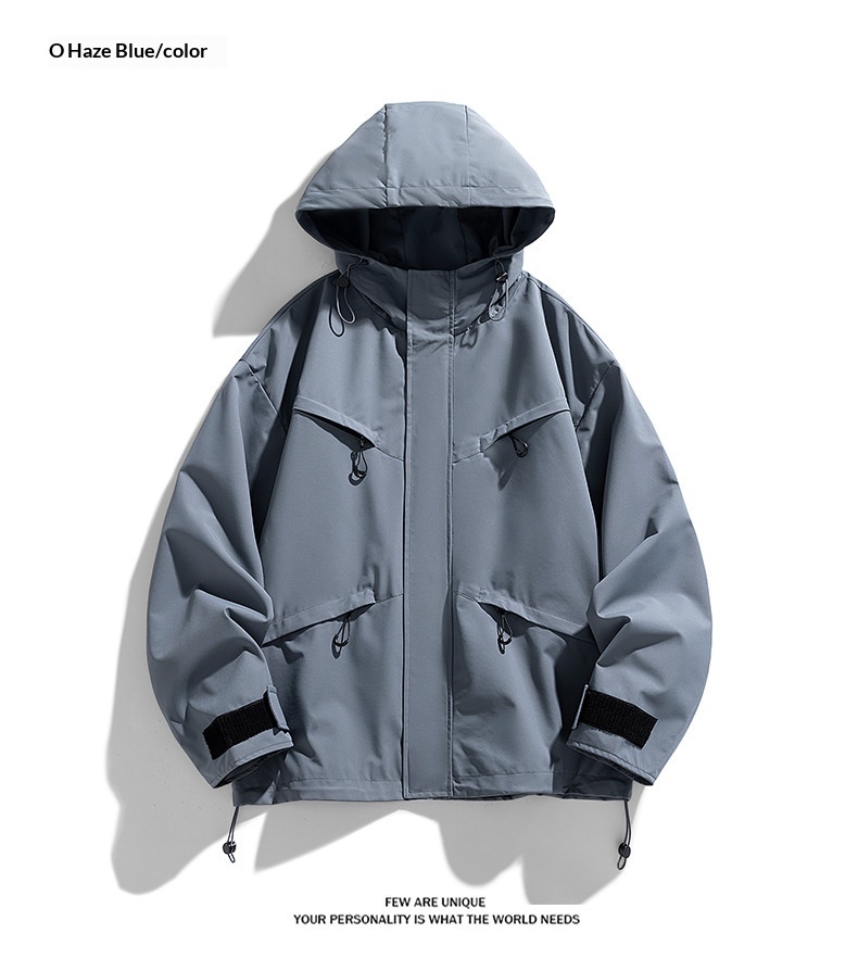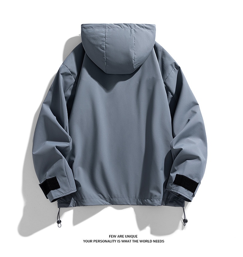 Japanese Style Retro Zippered Pocket Hooded Loose Fit Functional Shell Jacket